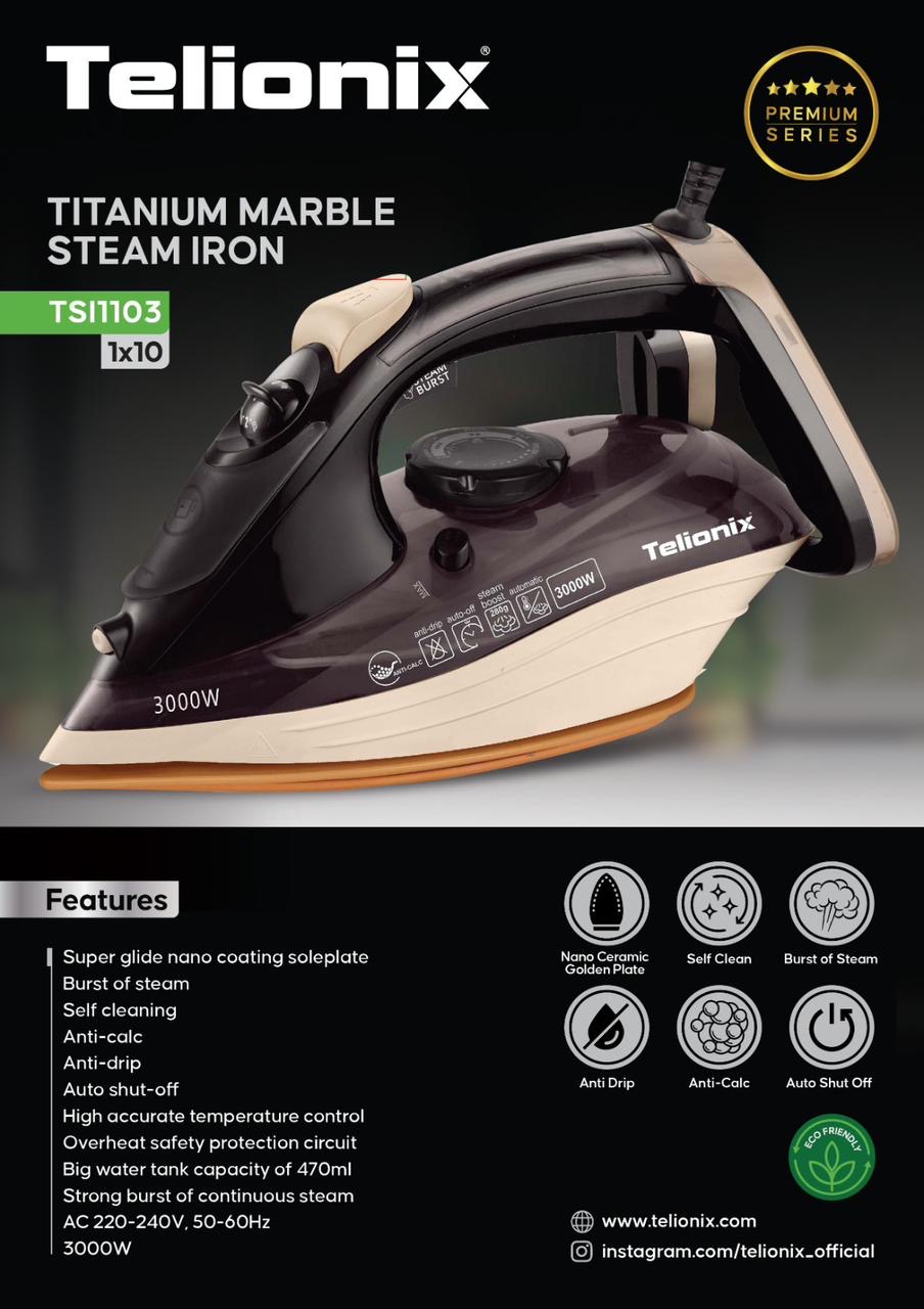 اتو بخار حرفهای تلیونیکس مدل 1103 با توان مصرفی بالا و طراحی کارآمد، انتخابی مطمئن برای استفاده خانگی و نیمهحرفهای است. این دستگاه با ظرفیت مخزن آب تقریباً 470 میلی لیتر و توان حدود 3000 وات، امکان بخاردهی قوی و پیوسته را برای صاف کردن انواع لباسها فراهم میکند.جنس کفی این اتو نانو سرامیک می باشد که هرگز دچار خط و خش و خرابی نمی شود.این اتو با قابلیت خود تمیز کنندگی هرگز رسوب نمی گیرد و مانند روز اول عملکرد قوی دارد.اگر به دنبال یک اتو هستید که سریع داغ شود، بتواند بخار قوی تولید کند، و برای لباسهای متنوع مناسب باشد این مدل میتواند گزینه خوبی باشد. با طراحی مدرن و امکانات مناسب برای کاربرد روزانه، میتواند تجربه اتوکشیتان را سادهتر کند و انتخابی هوشمندانه برای کسانی است که به دنبال ترکیبی از قدرت، زیبایی و دوام هستند.