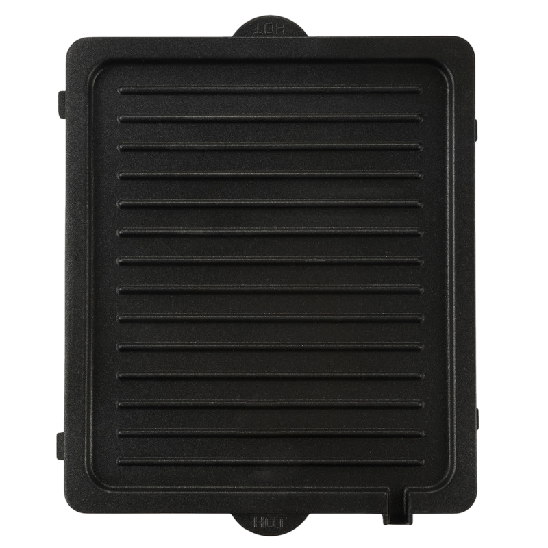 - صفحه گریل: بعد از باز کردن دستگاه تا 180 درجه میتوانید از صفحات گریل استفاده کنید. برای پخت همبرگر، ماهی، سبزیجات، استیک یا فیله مرغ و یا هر خوراکی دیگری که تمایل به گریل کردن دارید مناسب است.
