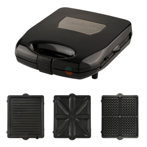 ساندویچ ساز ادمیلسون مدل SM۱۲۰ دارای سه صفحه پخت جداگانه است. صفحه اسنک ساز، صفحه گریل و صفحه وافل ساز. که هر کدام از این صفحات به راحتی قابل جابجایی بوده و کار با آنها بسیار آسان است. این محصول قابلیت باز شدن درب تا ۱۸۰ درجه را دارد که با این ویژگی به راحتی میتوانید از صفحه گریل استفاده نموده و غذاهایی مانند استیک، فیله مرغ و گوشت، سبزیجات و… را گریل کنید.
