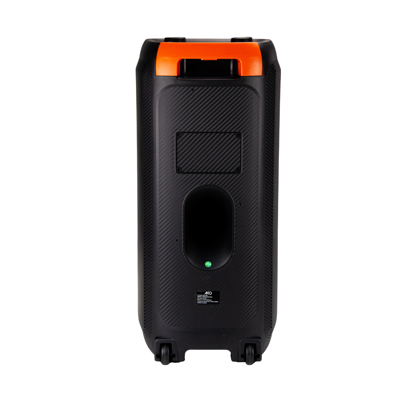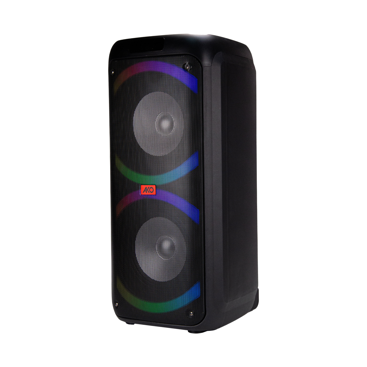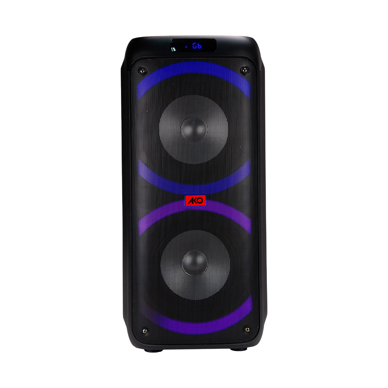 اسپیکر AKO Sound Box 950 — اسپیکر بلوتوثی چمدانی با توان ۶۰ وات، باتری داخلی، اتصال بلوتوث، کارت حافظه، USB، AUX، و رقص نور LED؛ گزینهای عالی برای مهمانیها و استفاده خانگی.