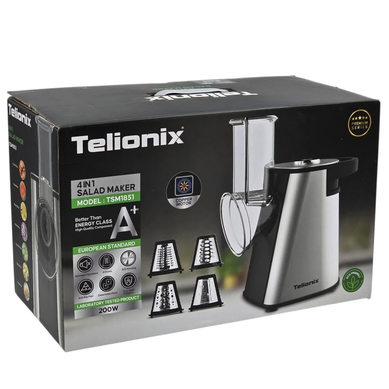 رنده برقی تلیونیکس مدل TSM1851 از بهترین و کارامدترین محصولات در زمینه رنـده است. که از موتور بسیار قوی و تیغه های استیل و بدنه مستحکمی برخوردار میباشد.دارای کاربرد رنده ریز و درشت، برش ورقه ای ، و دیسک آسیاب یا خردکن این محصول تمامی مواد لازم برای تهیه سالاد در اشپزخانه را براحتی با اشکال دلخواه شما خرد خواهد کرد. کارکردن با رنده برقی و سالاد ساز تلیونیکس بسیار ساده و راحت است و هر کسی به راحتی می تواند از آن استفاده کند. در ابتدا باید تیغه ای که می خواهید با آن کار کنید را داخل دستگاه بگذارید و سپس رنده را روشن کنید. با روشن کردن دستگاه، تیغه ها درگیر قدرت موتور خواهند شد. با کنترل فشار به سمت پایین نیز عمل میکند.این رنده برقی و سالادساز در زمان تهیه سالاد به شما کمک زیادی میکند و ازخرید و استفاده از این محصول زیبا و کارامد لذت خواهید برد.این دستگاه انتخابی هوشمندانه برای کسانی است که به دنبال ترکیبی از قدرت، زیبایی و دوام هستند.